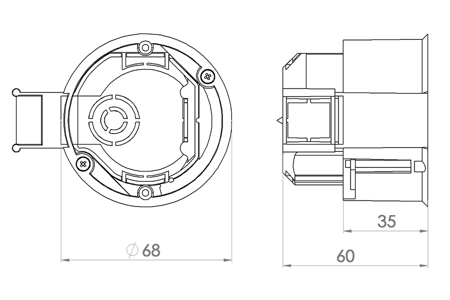 Изделието е изработено от самозагасващ полистирол до 850°C. Предназначено е за монтаж в гипсокартон. От него могат да се получат двойка, тройка и т.н. кутии без необходимост от допълнителни елементи. Междуцентровото разстояние на две кутии е 71mm. Има две дълбочини 60mm. и 35mm. Отговаря на БДС EN 60770-1, БДС EN 60695-2-11.