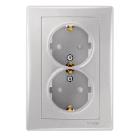 контакт двоен шуко с детска защита сглобен Sedna алуминиев Schneider electric SDN3090460