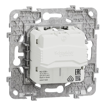 | Материал | PC: Механичен капак PC (поликарбонат) GF10 FR: корпус CuZn37: клеморед CuZn33: заземен контакт Zamak: монтажна рамка |