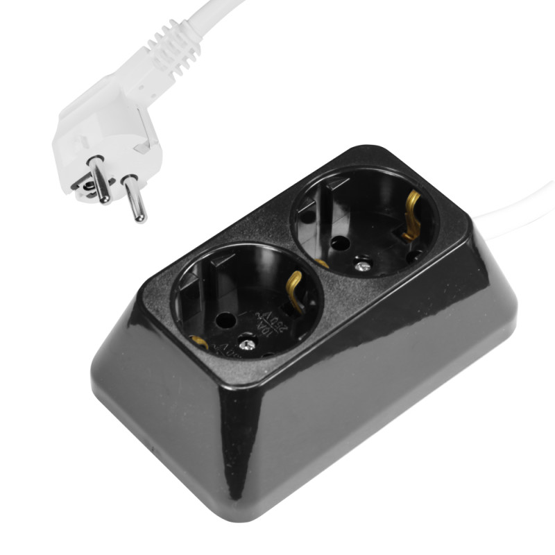 Удължител двоен с шнур 2 метра, черен, Технил