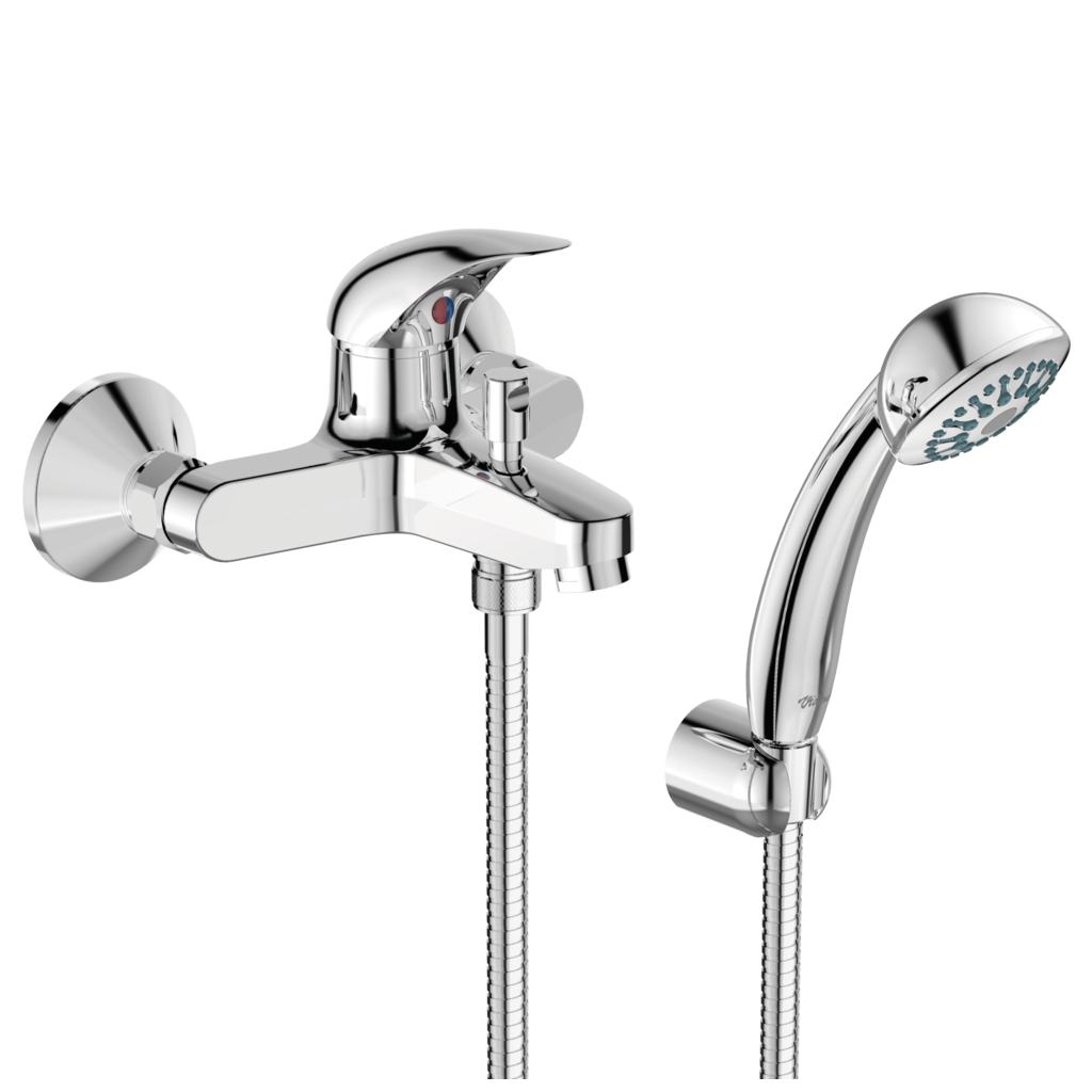 • Смесител стенен за вана/душ с аксесоари
