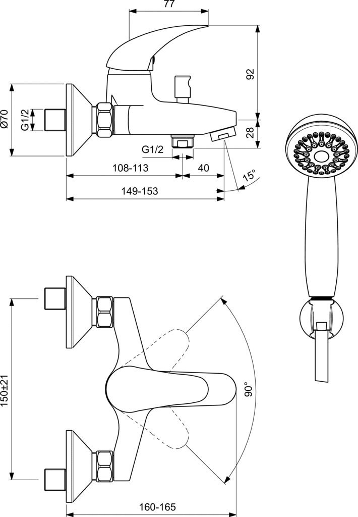 • • еднофункционален ръчен душ