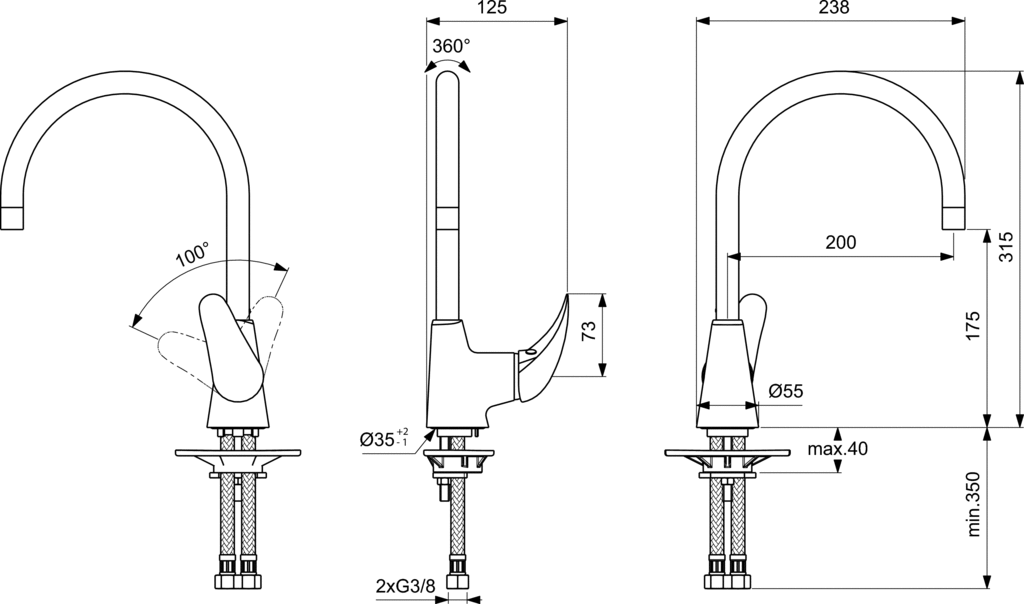 • Смесител стоящ за кухня с тръбен чучур